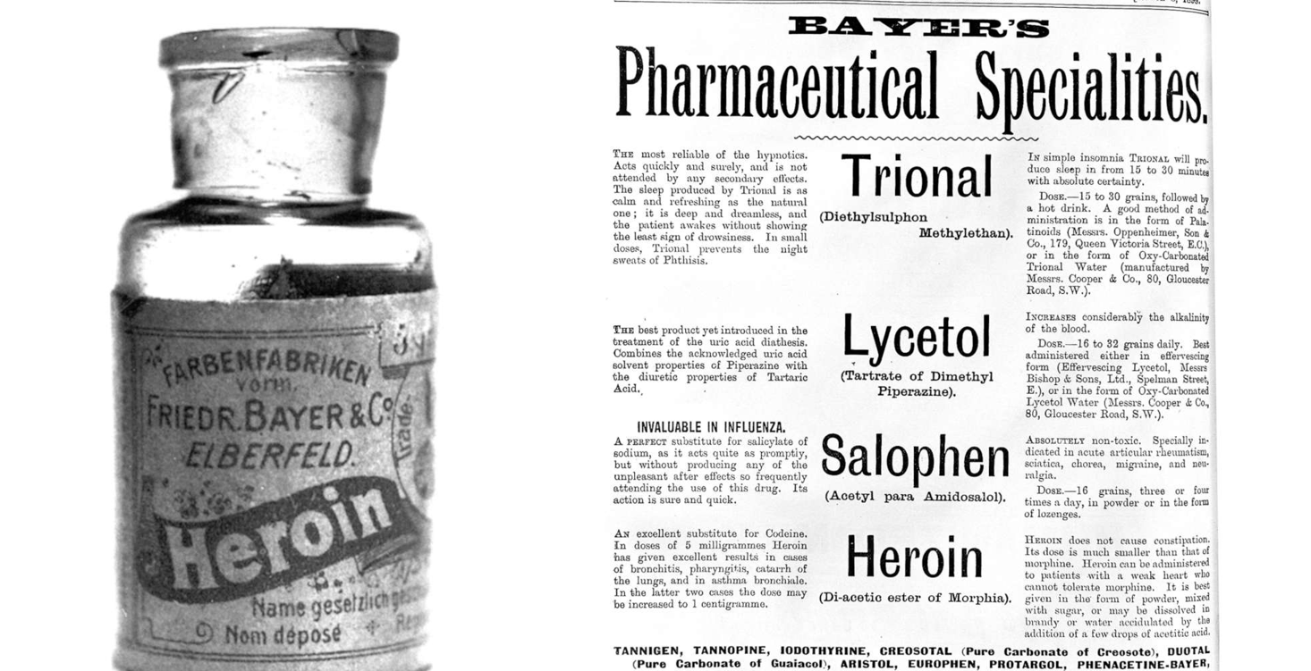 Već 1898. godine čuvena nemačka kompanija Bayer lansirala je heroin kao „čudotvorni lek“ protiv zavisnosti od morfijuma. Sintetizovan u Vupertalu, delovao je snažnije i brže izazivao zavisnost od morfijuma, pa ipak je ostao legalan na tržištu sve do 1931. godine. Nemački hemičari nisu krili ambiciju, želeli su da stvore savršeni lek, a dobili su jednu od najrazornijih opojnih supstanci u istoriji.