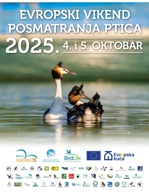 Društvo za zaštitu i proučavanje ptica Srbije (DZPPS) poziva sve ljubitelje prirode da 4. i 5. oktobra učestvuju u organizovanim izletima posmatranja jesenje migracije ptica u okviru manifestacije “Evropski vikend posmatranja ptica”. Izleti će biti organizovani na više lokacija širom zemlje, a vodiće ih iskusni ornitolozi, članovi Društva i drugi poznavoci ptica. Zainteresovani učesnici mogu se prijaviti putem sajta pticesrbije.rs najkasnije do 2. oktobra ili dok ima slobodnih mesta.
